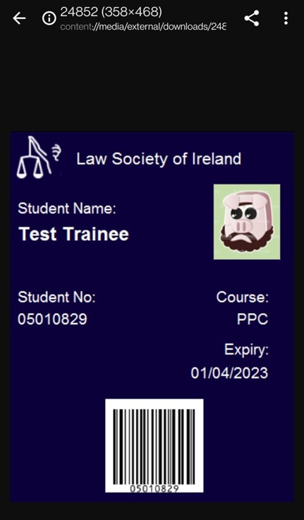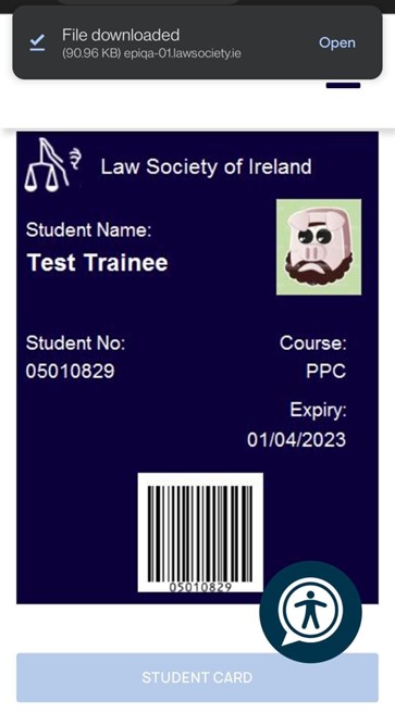 - Tap or click the Student card button and the system will start downloading the student card.