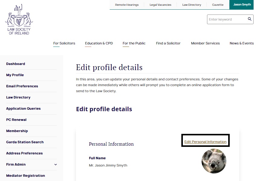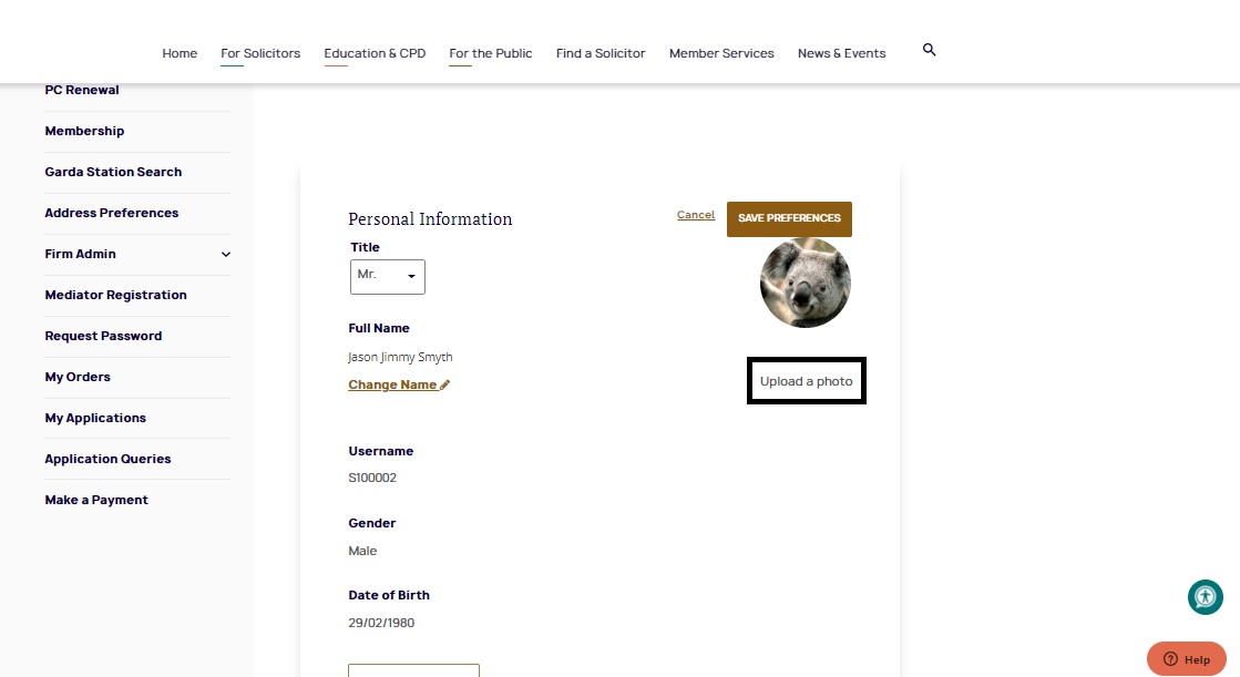 Select 'Edit Personal Information' and then 'Upload Photo'