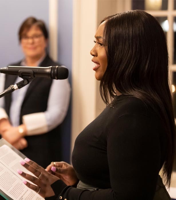 Jade Bakare (Law School ambassador and Dentons’ real-estate associate) said that she preferred not to identify as a first-generation child of African immigrants, but that was her reality.