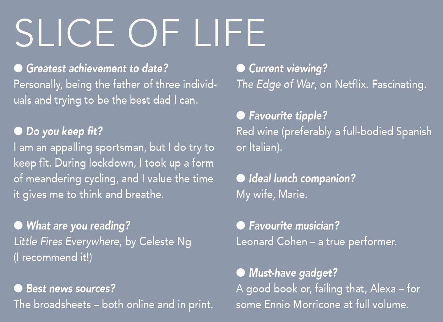 “Emotional intelligence is massively important, and sometimes it’s not rated,” he says. “There’s a lot of opportunity in Ireland, with technological and pharma innovation, and financial-services growth. You would hope that it will continue like that.”