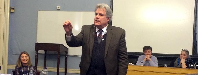 He described the peace-making process, as practised by Native Americans, which he said had reduced the number of children in foster care in his Michigan area by 35%.
