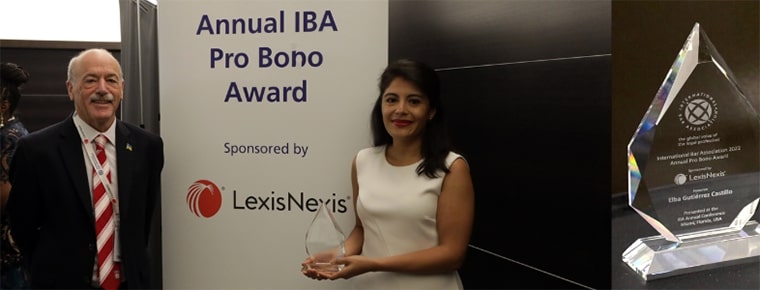 The IBA Pro Bono Award winner is Elba Gutiérrez, of the Greenberg Traurig Global Pro Bono programme, for her instrumental role in delivering and promoting pro bono legal services in Mexico, a country where this type of legal work is uncommon.