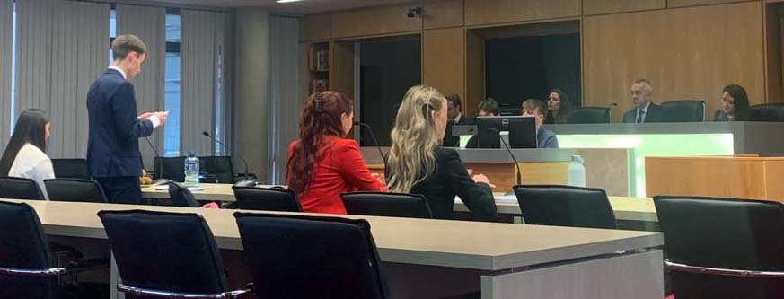 In teams of two, this year’s participants prepared both defence and prosecution arguments on behalf of their (fictitious) client, in the most convincing manner possible.