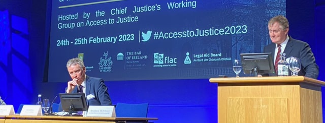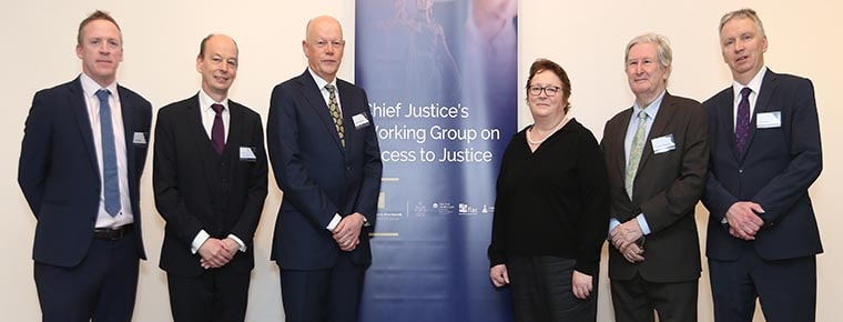 Chief Justice’s access to justice working group at the conference: John Lunney (Law Society nominee), Joseph O’Sullivan BL (Bar of Ireland nominee), Chief Justice Donal O'Donnell, Eilis Barry (FLAC), Mr Justice John MacMenamin (retired Judge of Supreme Court), John McDaid (Legal Aid Board)