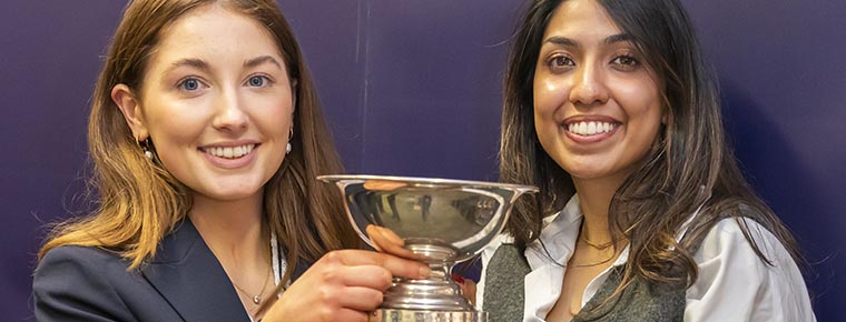 A Law Society team of PPC trainees Noor Choudry (Maples) and Meadhbh Jones (A&L Goodbody) took first place in the 2025 National Negotiation Competition, held at Blackhall Place on Saturday (22 February).