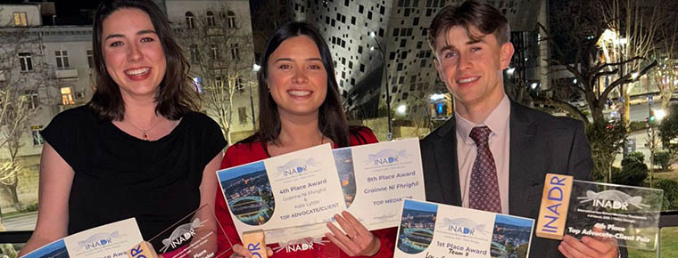 Three Blackhall Place trainees have won a prize at the prestigious International Academy of Dispute Resolution (INADR) 2025 mediation competition in Tbilisi, Georgia.