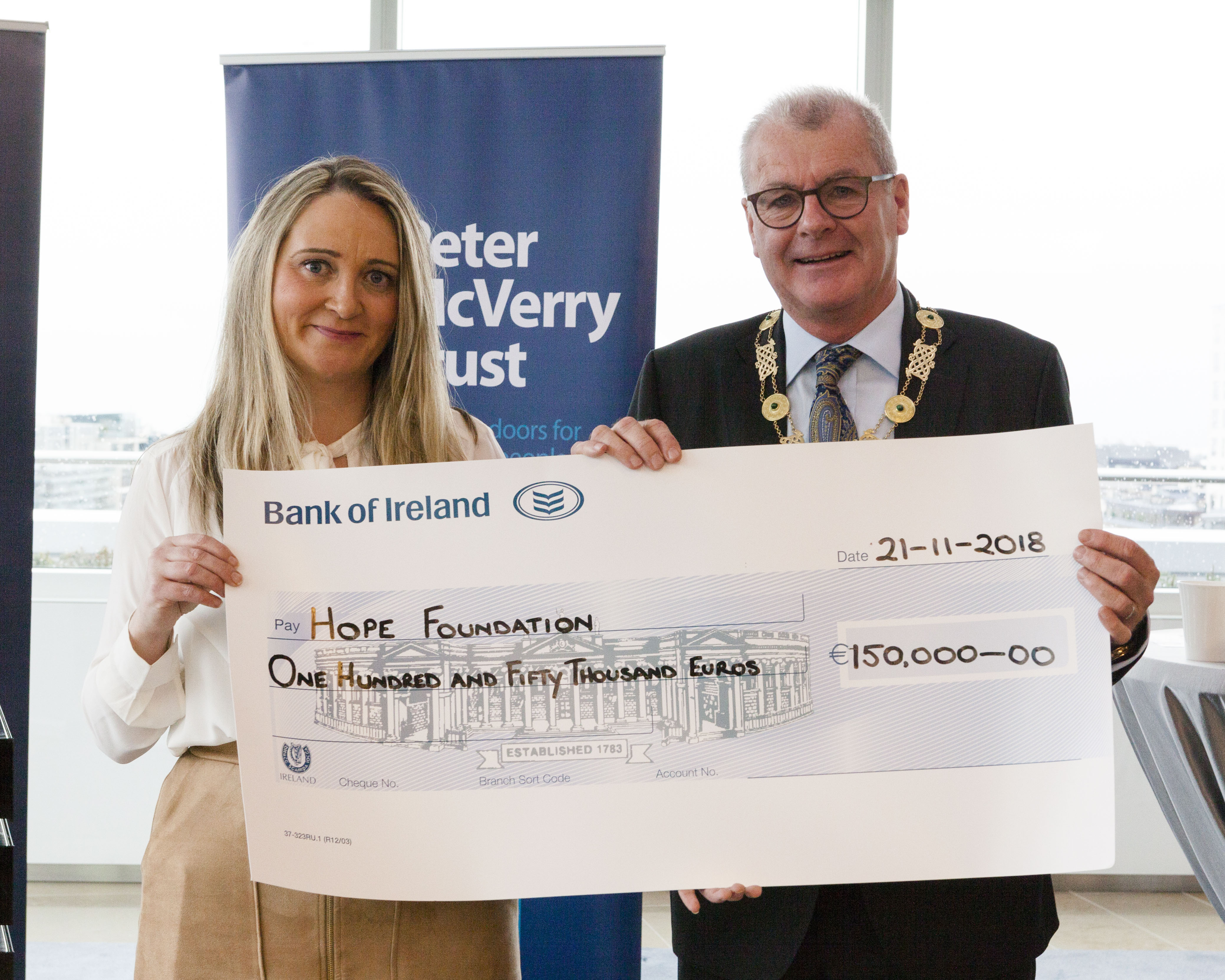 Calcutta Run organisers recently presented Peter McVerry Trust and The Hope Foundation with cheques for €150,000 each at an event held at law firm, William Fry. The money was raised through the Calcutta Run held earlier this year on Saturday 19 May.